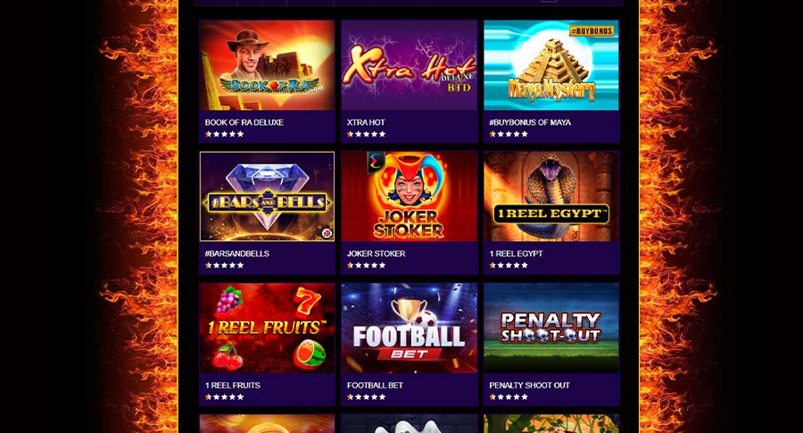 Игровой зал эффективно поделен на различные тематические блоки. Большой выбор видео слотов ждет в соответствующем разделе, где расположены такие хиты как Fruit Cocktail, Crazy Monkey, Book of Ra Deluxe, Xtra Hot и многие другие известные онлайн аппараты.